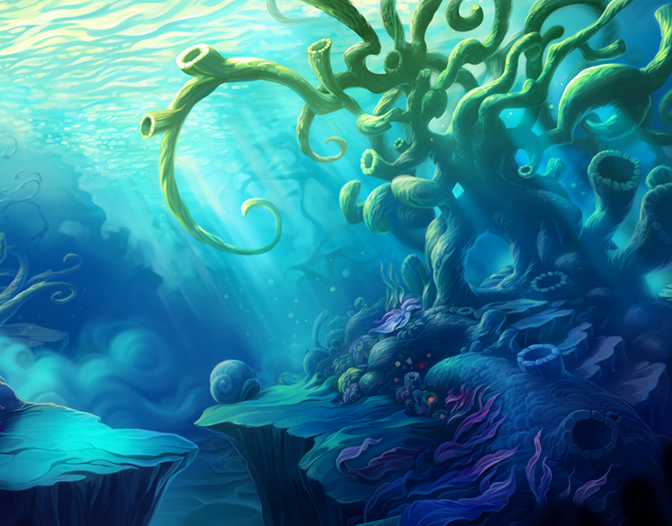 Final production version created to work in both portrait and landscape orientations of mobile and tablet devices. Major color and design painting from Raimundo Pousada, final adjustments and extended composition/ production paintover by me.