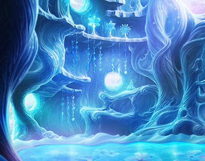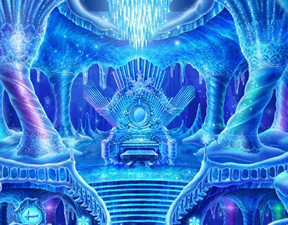 Ice Palace for Pixie Hollow—the residence of the Minister of Winter. Different stages keyframed for interactive animations. Designed and painted by me using Photoshop CS5. Art Directed by Anthony Licon