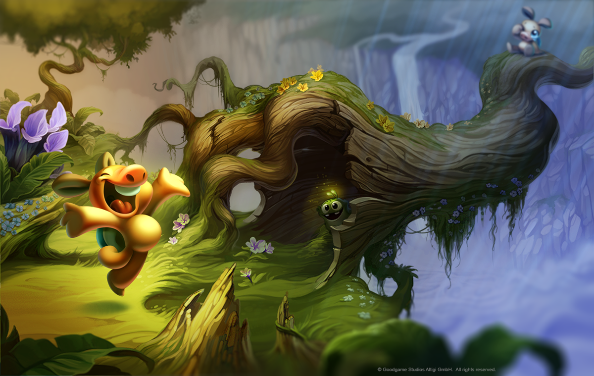 Mockup in the style/ style guide for environments and setttings painted and composed by me. Characters design by Katri Valkamo and Mark Hansen; render by me. © Goodgame Studios Altigi GmbH. All rights reserved.